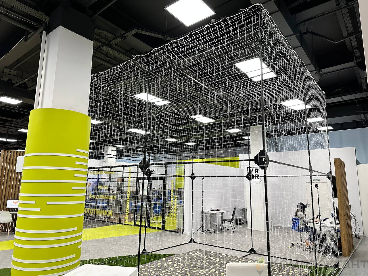 Оборудованная зона для полётов – куб для полётов 3х3х3м с демпфирующим покрытием