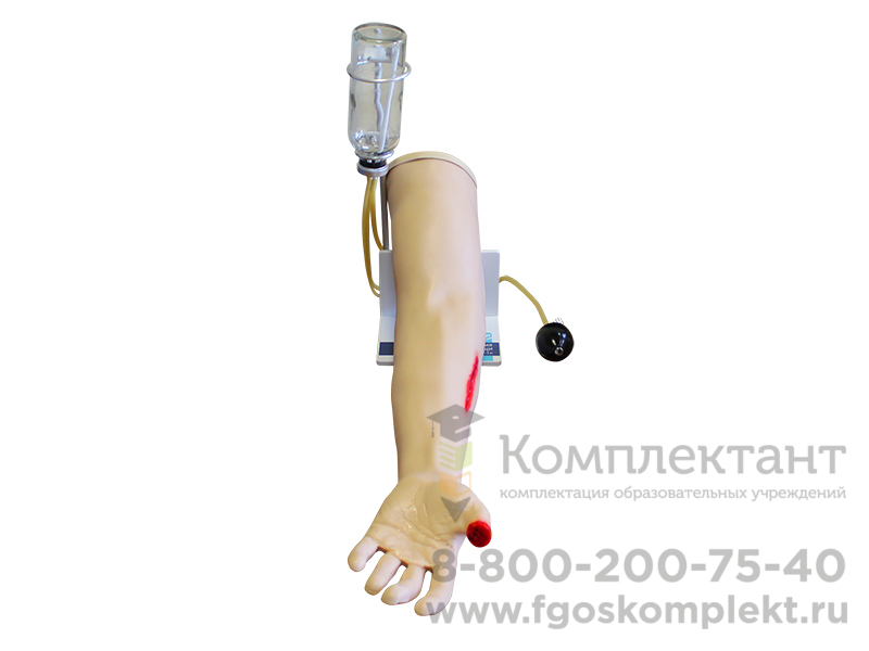 Фантом поддерживает функцию циркуляции имитатора крови, которая может течь как из поврежденного предплечья, так и артерии большого пальца.